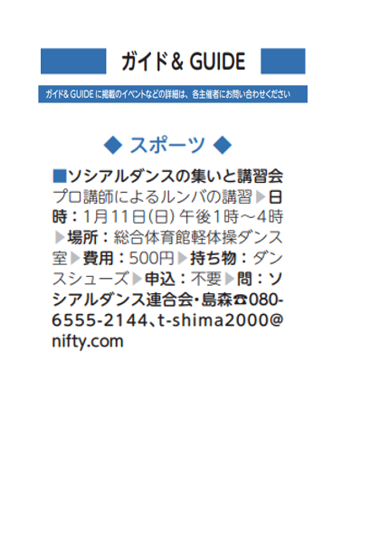 ソシアルダンスの集いと講習会(ソシアルダンス連合会)【1/11(日)】