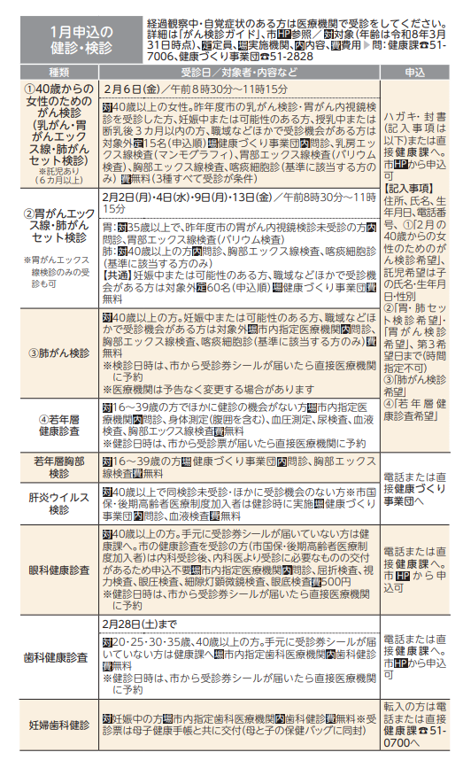 1月申込の検診(健康課・健康づくり事業団)