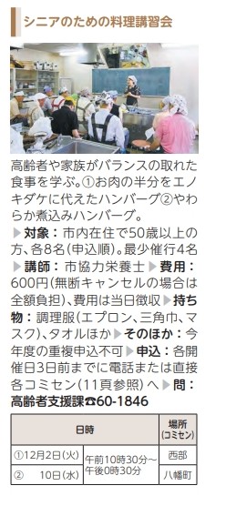 シニアのための料理講習会(高齢者支援課)【12/2(火)・10(水)】