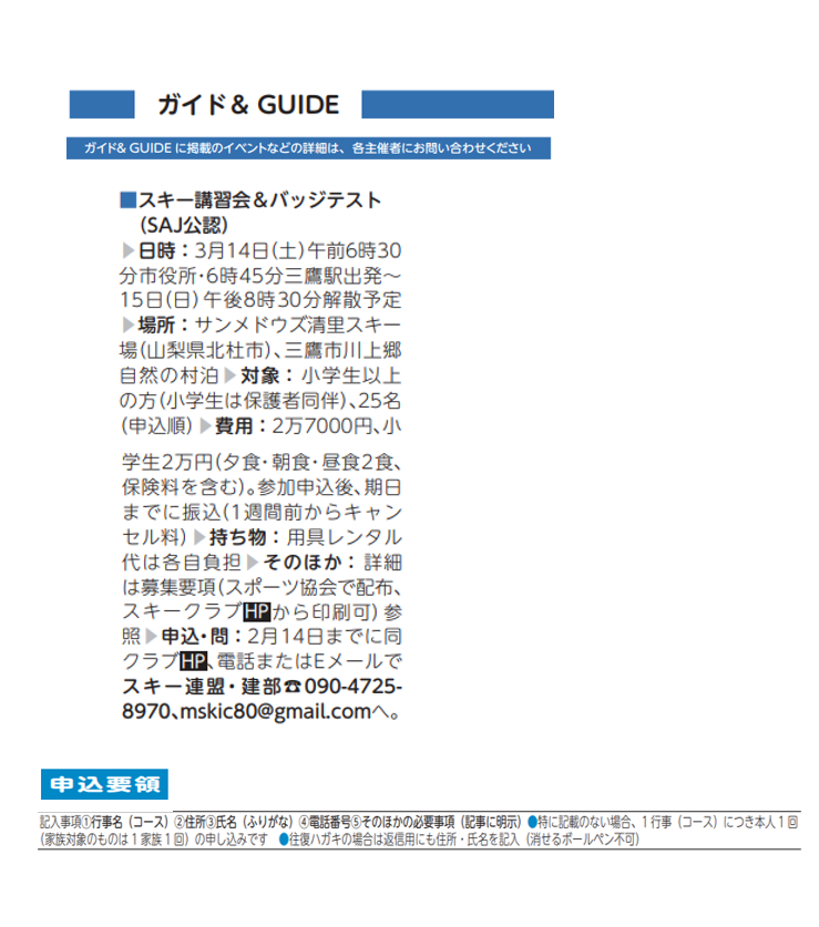 スキー講習会&SAJ公認バッジテスト(スキー連盟)【3/14(土)~15(日)】