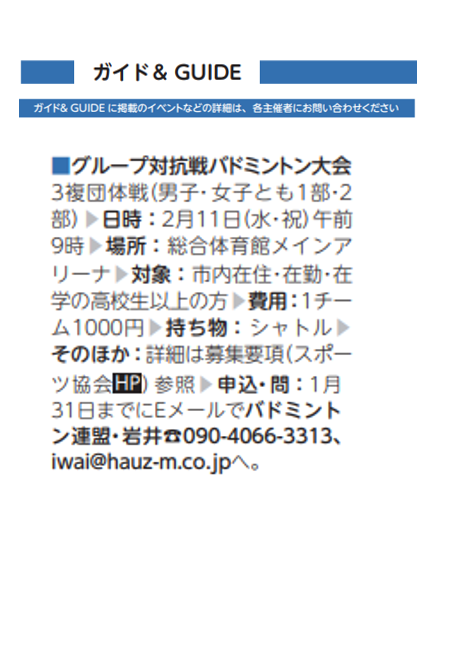 グループ対抗戦バドミントン大会(スポーツ協会)【2/11(水・祝)】
