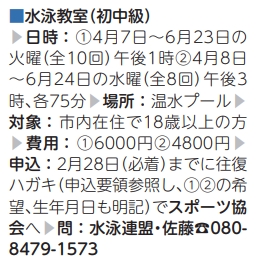 ジュニア水泳教室(水泳連盟)【4/6(月)~6/30(月)他】