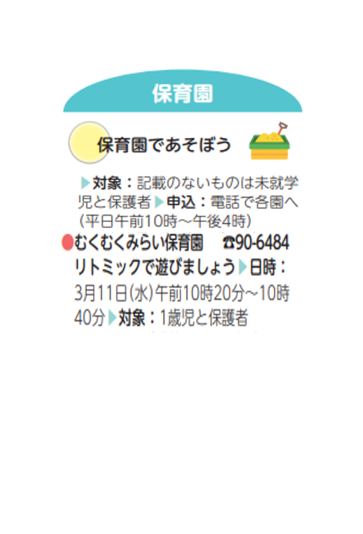 体育施設利用者・スポーツ教室参加者のお子さんの一時保育のご案内(総合体育館)【3月分】