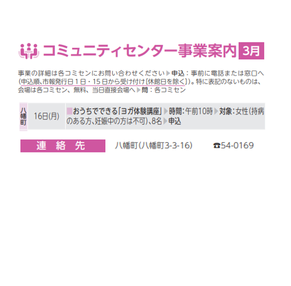 おうちでできる「ヨガ体験講座」(八幡町コミセン)【3/16(月)】