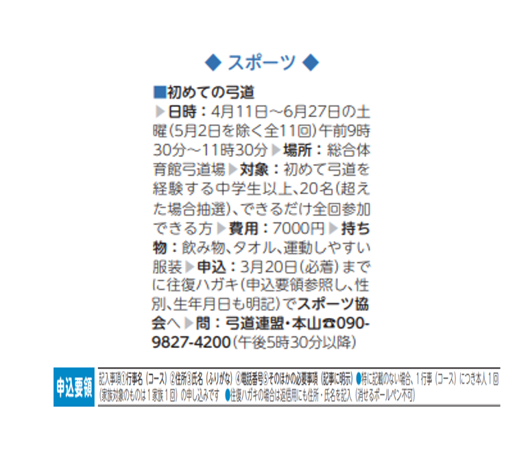 弓道教室(弓道連盟)【4/11(土)~6/27(土)】