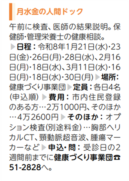託児付き人間ドック(健康づくり事業団)【11/4(火)他】