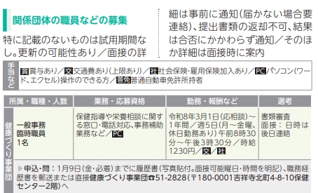 一般事務(嘱託職員)募集(健康づくり事業団)