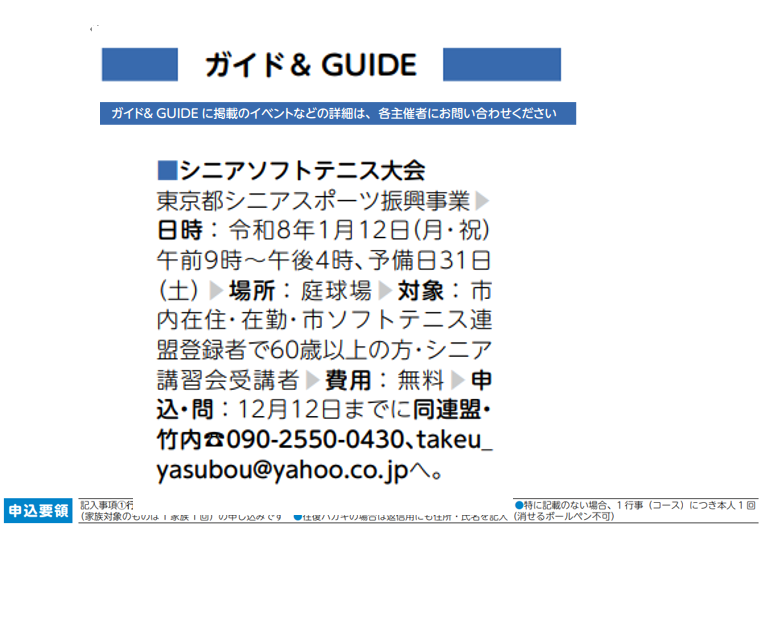 シニアソフトテニス大会(ソフトテニス連盟)【令和8年1/12(月・祝)】