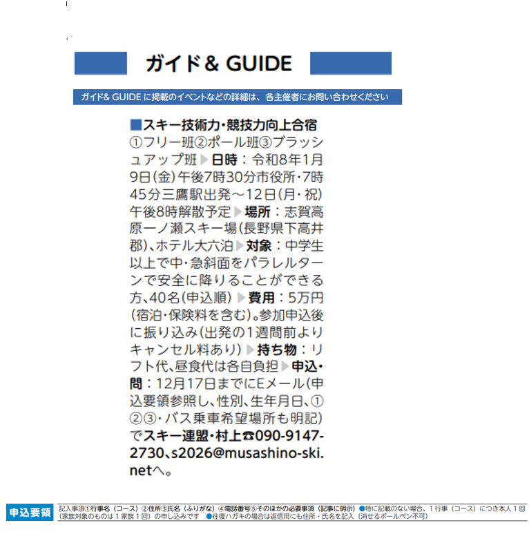 スキー技術力・競技力向上合宿【令和8年1/9(金)~12(月・祝)】