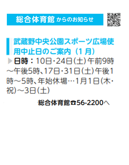 《使用中止のお知らせ》武蔵野中央公園スポーツ広場【1月分】