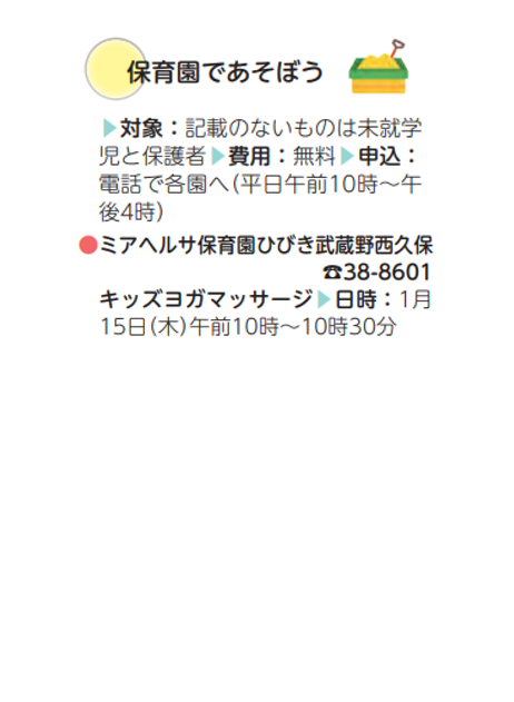 キッズヨガマッサージ(ミアヘルサ保育園ひびき武蔵野西久保)【1/15(木) 】