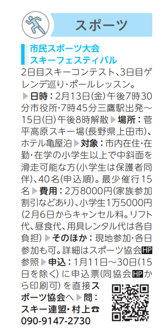 市民スポーツ大会スキーフェスティバル(スポーツ協会)【2/13(金)】