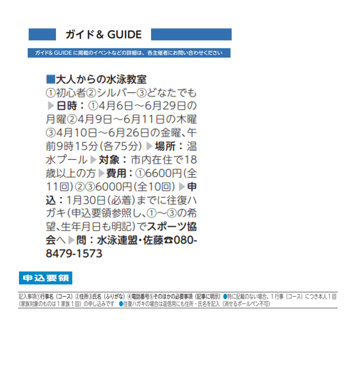 大人からの水泳教室(水泳連盟)【4/6(月)~6/29(月)他】