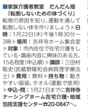 家族介護教室「転倒しないための体づくり」(吉祥寺ナーシングホーム在宅介護・地域包括支援センター)【1/22(木)】