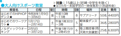 大人向けスポーツ教室(総合体育館)【令和8年1/9(金)~】