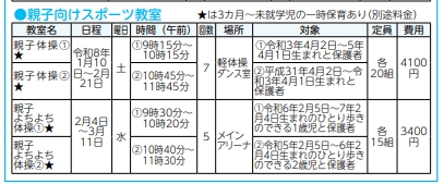 親子向けスポーツ教室(総合体育館)【令和8年1/10(土)~】