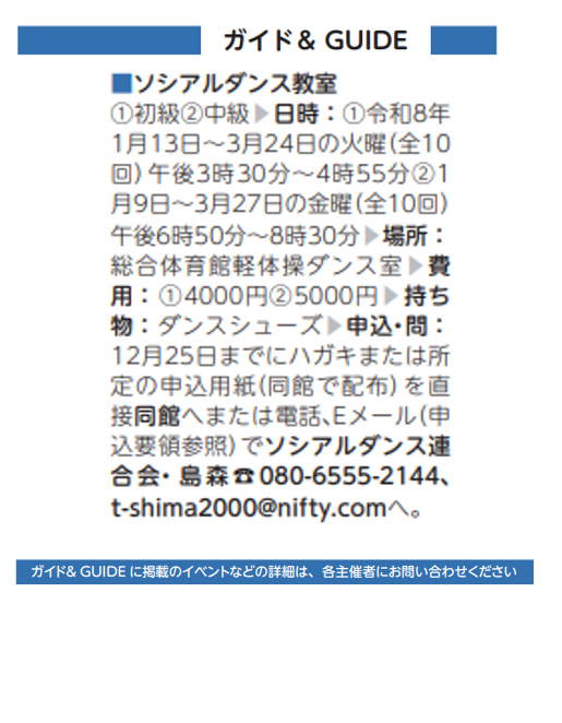 ソシアルダンス教室(ソシアルダンス連合会)【令和8年1/13(火)~】