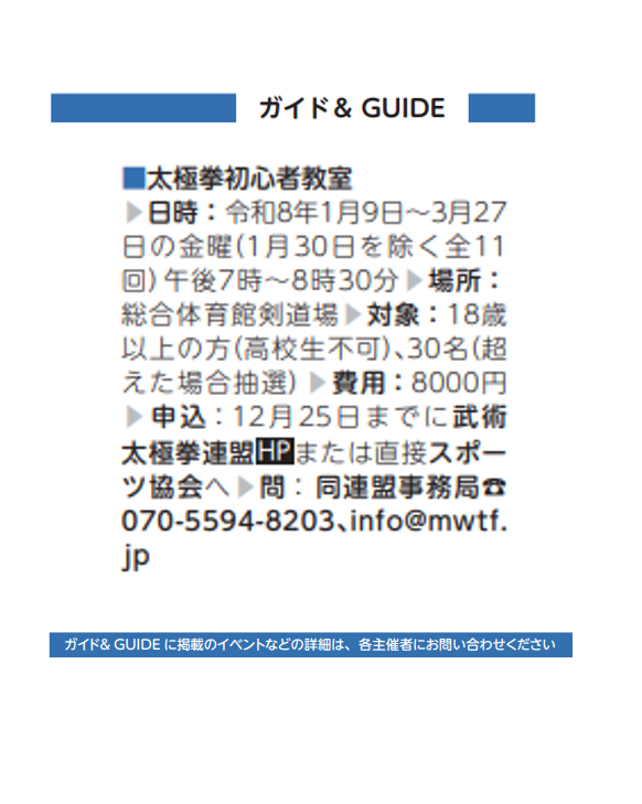 市民スポーツ祭「武術太極拳・馬術」(スポーツ協会)【12/6(土)他】