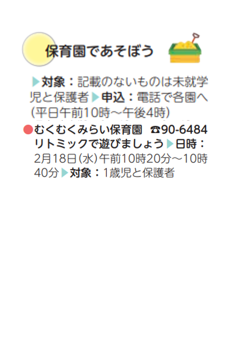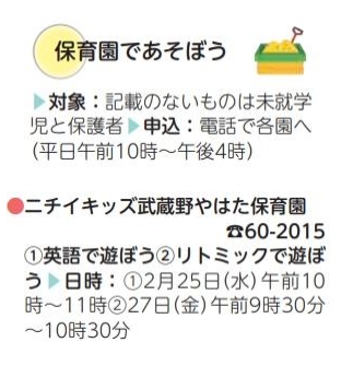 体育施設利用者・スポーツ教室参加者のお子さんの一時保育のご案内(総合体育館)【2月分】