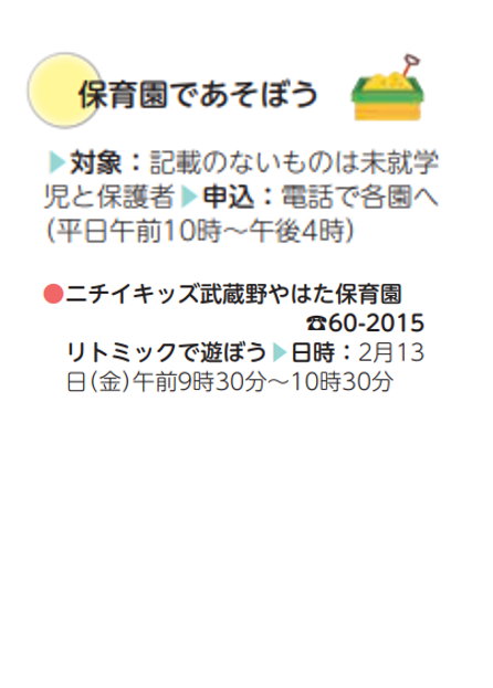 リトミックで遊ぼう(ニチイキッズ武蔵野やはた保育園)【2/13(金)】