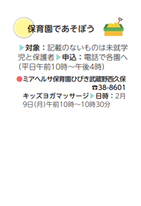 キッズヨガマッサージ(ミアヘルサ保育園ひびき武蔵野西久保)【2/9(月) 】