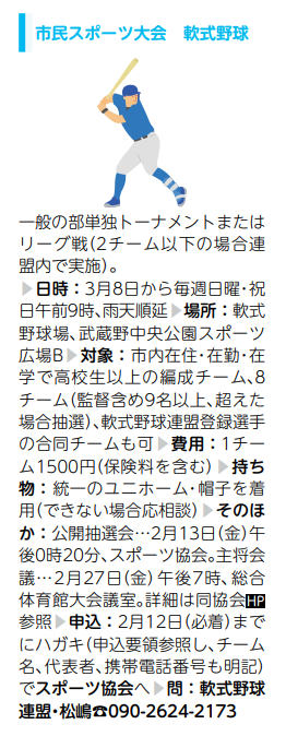 市民スポーツ大会 軟式野球(スポーツ協会)【3/8(日)他】