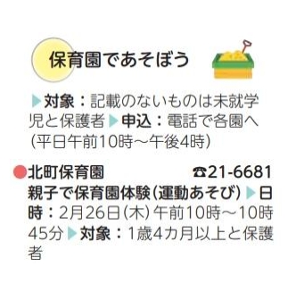 親子で保育園体験(運動遊び)(北町保育園)【2/26(木)】