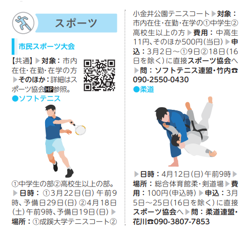 市民スポーツ大会 ソフトテニス・柔道(スポーツ協会)【3/22(日)・4/12(日)】