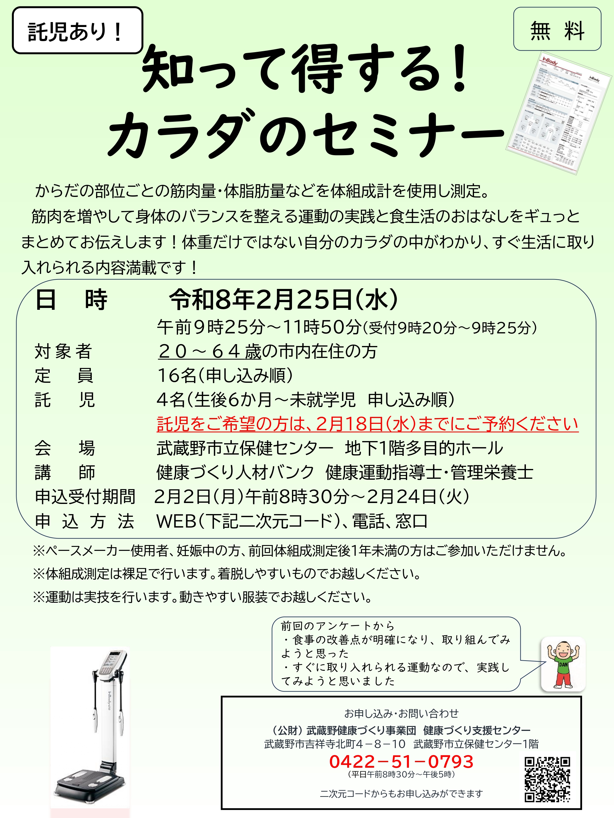 筋肉量・体脂肪量などの体組成が分かるインボディ測定と、栄養・運動の講座を